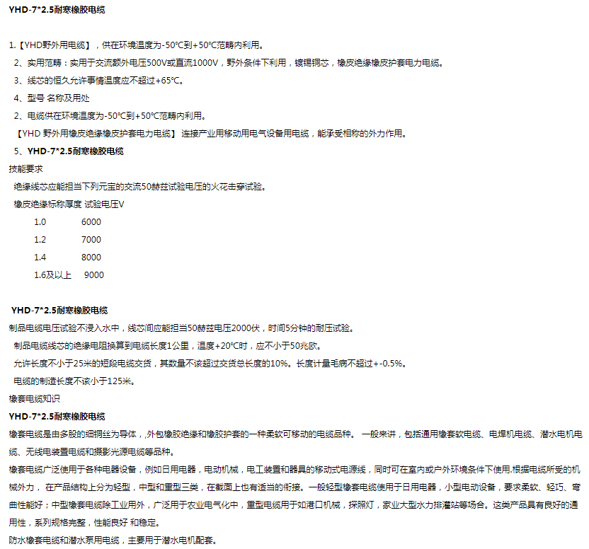 中盛电缆耐寒橡胶电缆野外用橡皮电缆YHD