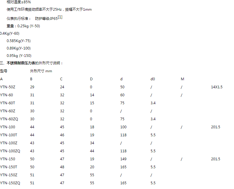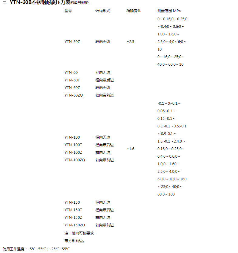不锈钢耐震压力表YTN-60-B 0~1Mpa
