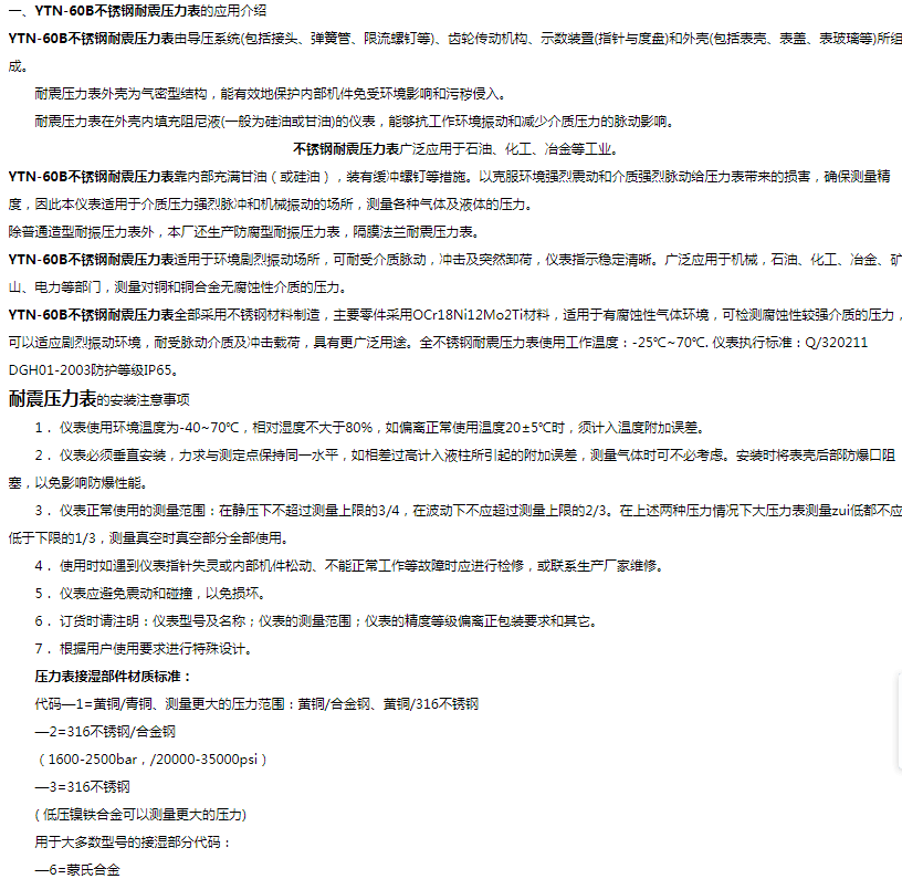 不锈钢压力表