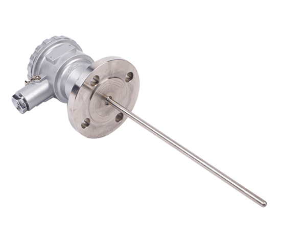 固定法兰式热电偶WRF2-430G作为测量温度的传感器,通常和显示仪表、记录仪表和电子调节器配套使用。它可以直接测量各种生产过程中从0℃~1800℃范围内的液体、蒸汽和气体介质以及固体的表面温度。