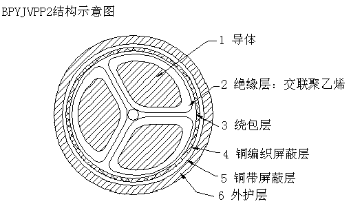 | BPYJVPP2 | 交联聚乙烯绝缘聚氯乙烯护套铜丝编织铜带绕包屏蔽变频电力电缆。 |